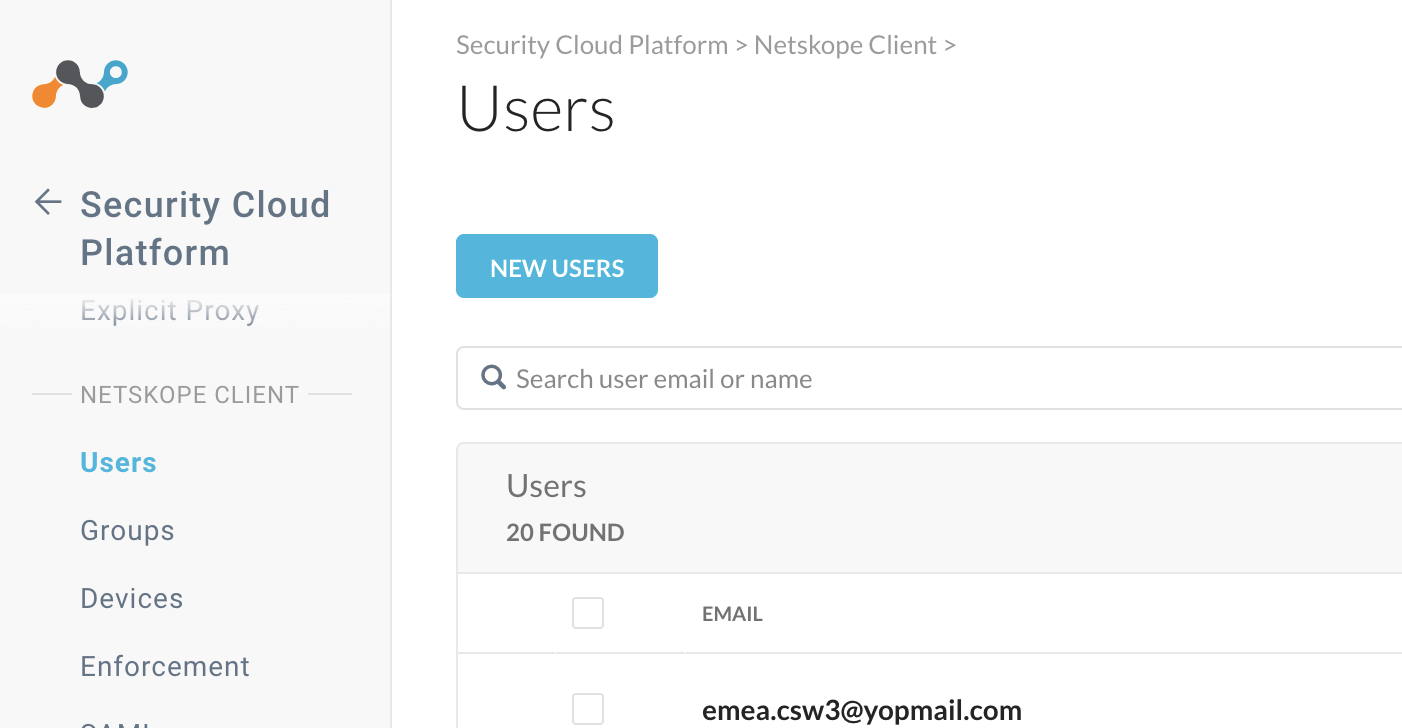Step 2 Navigate to Security Cloud Platform > Netskope Client > Users.