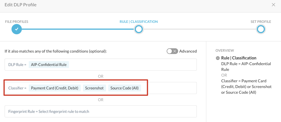 Step 1 Review the existing DLP Profile "Corporate-DLP-Profile" and check the below classifiers. Please DO NOT CHANGE the profile.